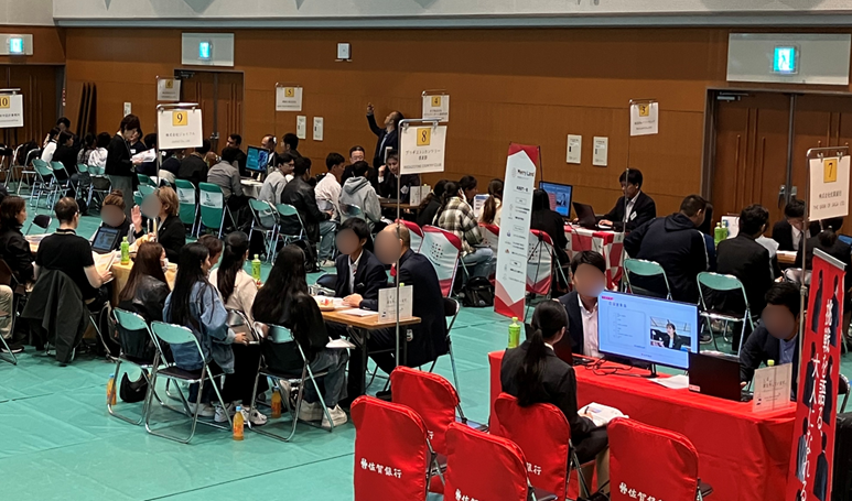 3回の面談会を開催し、参加企業のブースを留学生たちが訪問して説明を受けたり、積極的に質問をしたりする様子が見られました