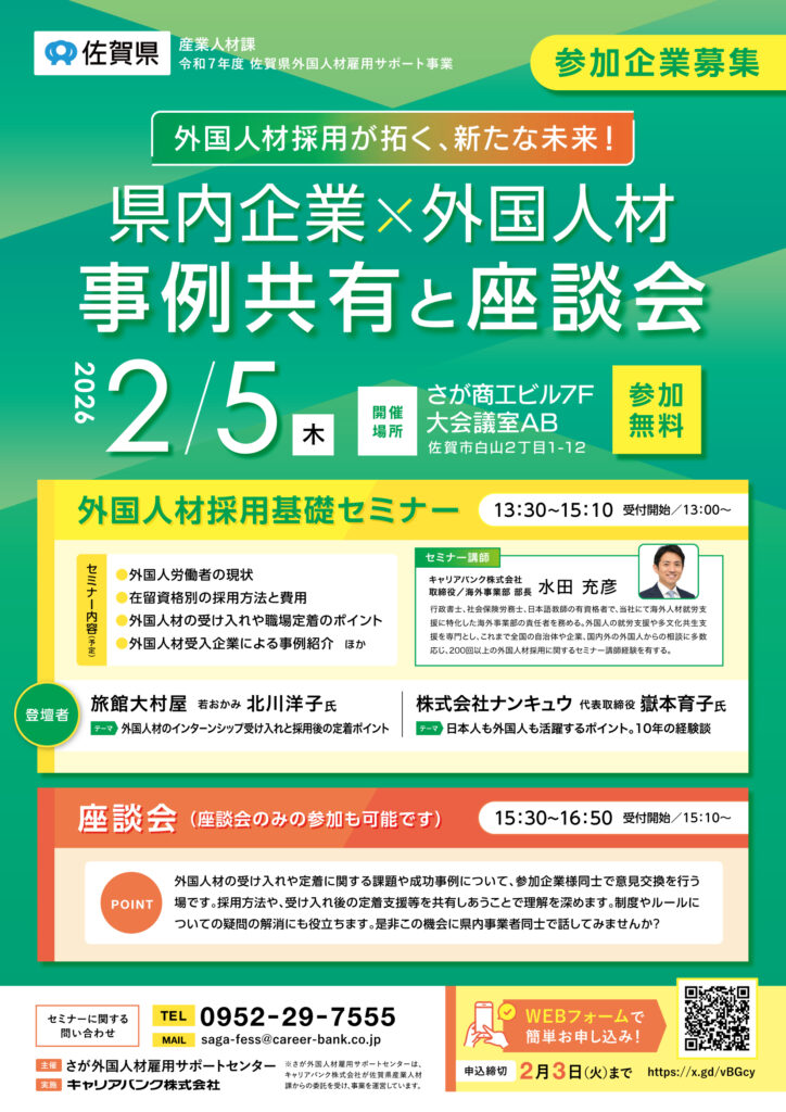 今後も外国人材に関するセミナーやイベントを開催してまいります。最新情報は、さが外国人材雇用サポートセンター(FESS)の公式サイトで随時お知らせしますので、ぜひご確認ください!