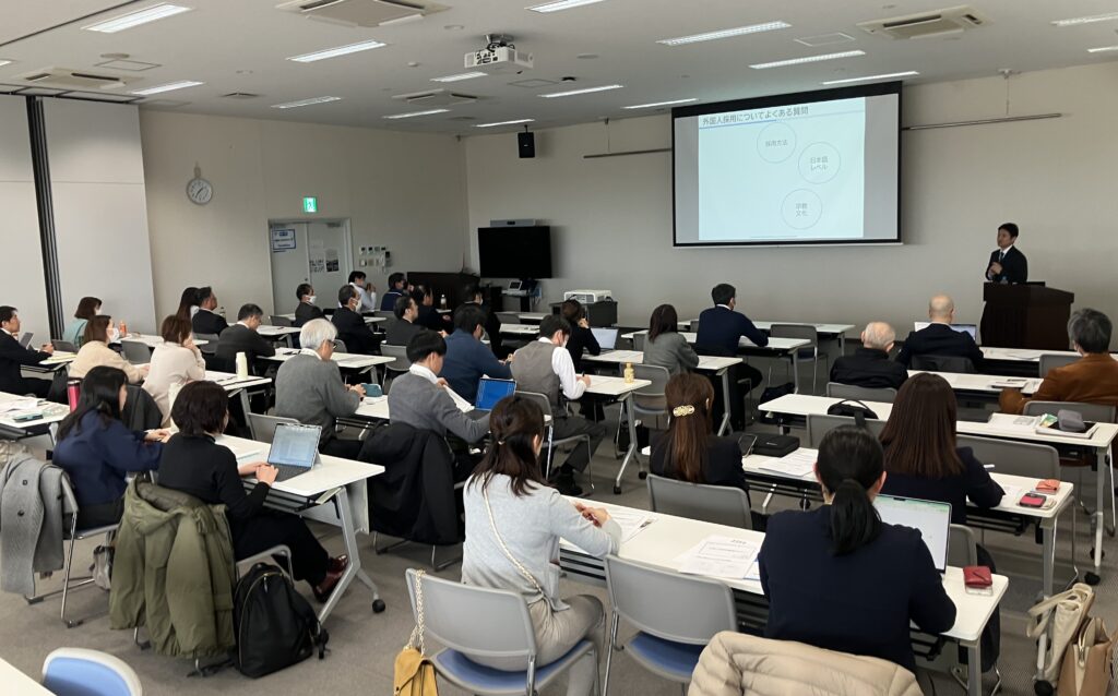 2/5(木)佐賀県主催 「外国人材採用基礎セミナー&座談会」を開催いたしました。 本セミナーは、佐賀県外国人材雇用サポート事業の一環で行い、対面で合計30人近い方々にご参加いただきました!
